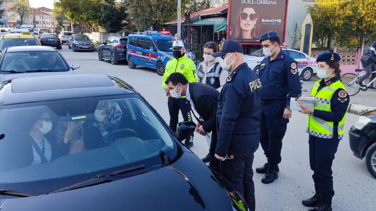 Türkiye genelinde başlatılan trafik kampanyasıyla ilgili Sapanca ilçe Emniyet Müdürlüğü ve ilçe Jandarma Komutanlığı ekiplerince sürücülere emniyet kemerinin önemini anlatan broşürler dağıtıldı.