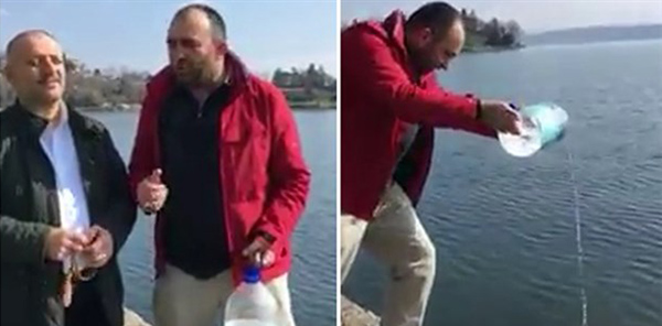 Sakarya'da esnaflık yapan Ebubekir Tuncer'in sosyal medya hesabından paylaştığı görüntü ilgi çekti. 2 hafta önce umreden döndüğünü belirten Ebubekir Tuncer, elindeki bidondan Sakarya'nın su ihtiyacının karşılandığı Sapanca Gölü'ne zemzem dökerek kendince mayalama yaptı.