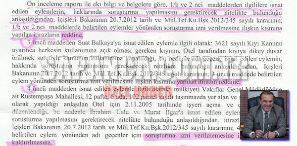 Başkan İbrahim Uslu’nun Richmond otele usulsüz ruhsat verdiği iddiası ile süren soruşturma kapsamında, Uslu’nun İçişleri Bakanlığı tarafından hakkında verilen soruşturma iznine yaptığı itiraz Danıştay tarafından reddedildi.