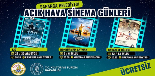 Korona virüs salgını nedeniyle devam eden kontrollü sosyal hayat döneminde vatandaşların yaz akşamlarını eğlenceli hale getirmeye çalıştıklarını belirten Sapanca Belediye Başkanı Özcan Özen, "Açık hava sinema akşamları 29 Ağustos Cumartesi akşamı 120 filmiyle Kırkpınar Amfi Tiyatroda halkımızla bulaşacak. Covid-19 tedbirleri nedeniyle sosyal aktivitelere uzak kalan vatandaşlarımıza bir nebze olsa da moral vermek amacıyla sosyal mesafe kuralına uyarak düzenlemiş olduğumuz etkinliğimize tüm halkımız davetlidir" dedi.