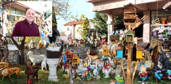 Sapanca ilçesinde, Telat Öztaş, el emeği ile ahşaptan yaptığı aksesuarlarla bahçeleri süslüyor.