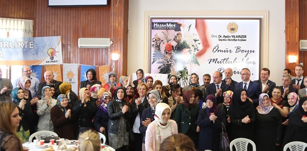İlçe Kadın Kolları Başkanı Günnur Çelik yemek öncesi yaptığı konuşmada İl Kadın Kolları Başkanı Hatipoğlu'nun açıklamalarına dikkat çekti. Çelik, 'Kadınlarımız beşikte sallar, dünyayı da sallar' dedi.