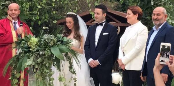 Düğüne damat Gökhan Sezer'in halası, yeni bir parti kurma hazırlığındaki TBMM eski Başkanı Meral Akşener de katıldı.