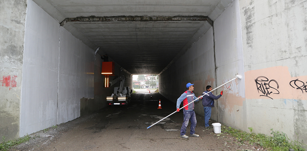 Gerek yayaların gerekse araçların kullandığı alt geçitler ihtiyaca göre yeniden düzenleniyor. Alt geçitlerin yüksek bölümleri özel bir araç tarafından temizlenerek yeniden boyanıyor.