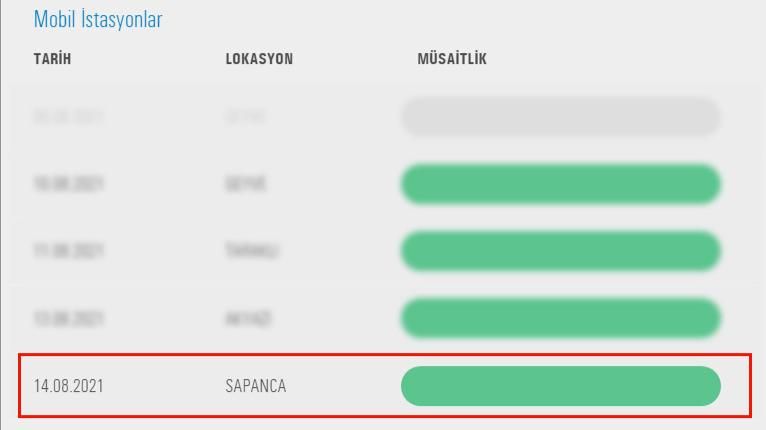 Gezici muayene istasyonunda traktör, motosiklet ve otomobillerin muayenesinin yapılabileceğini belirten Kubilay, ''Vatandaşlarımızın TÜVTÜRK internet sayfasından randevu oluştururken sırasıyla, muayene alınmak istenen tarihi 14 Ağustos 2021, muayenenin bitiş tarihini ve Sakarya ilini seçtikten sonra çıkan sayfada görülecek olan gezici muayene istasyonlarından en alttaki Sapanca'yı seçmesi ve daha sonra randevu saatini belirlemesi gerekmektedir" dedi.