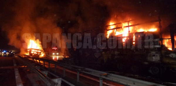 Kaza saat 23:30 sıralarında Sapanca Yanık Mahallesi yakınlarında meydana geldi. Alınan bilgiye göre; Ankara yönünde seyreden ve sürücüsü henüz belirlenemeyen 24 F 1291 dorse plakalı TIR, İhsan Pekinalp idaresindeki 34 CCL 26 plakalı tankere daha sonrada Tahsin Özcan yönetimindeki 37 PS 111 plakalı tekstil malzemesi yüklü kamyona çarptı. Çarpma sonucunda kamyon ve TIR yandı. Araç içinde sıkışan ve ismi henüz öğrenilemeyen TIR sürücüsü yanarak hayatını kaybetti. Tankerde ise maddi hasar meydana geldi.