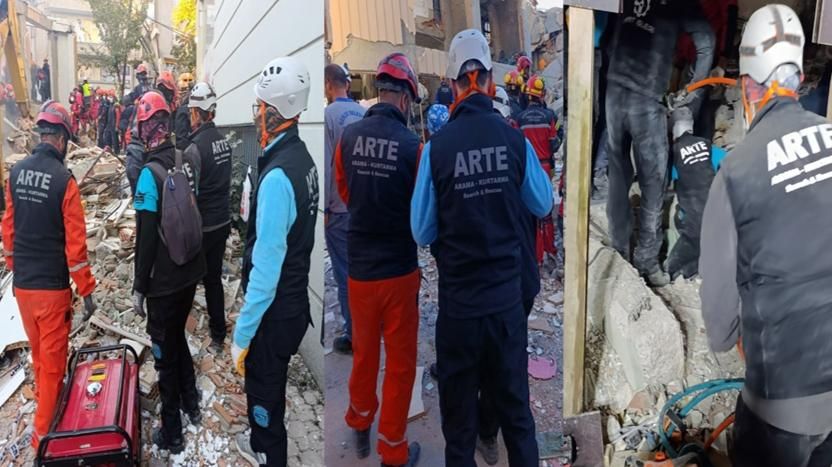 Sapanca merkezli Arama ve Kurtarma ekibi (ARTE), Kocaeli'nin Gebze İlçesinde çöken 7 katlı binada arama kurtarma çalışmalarına destek verdi.