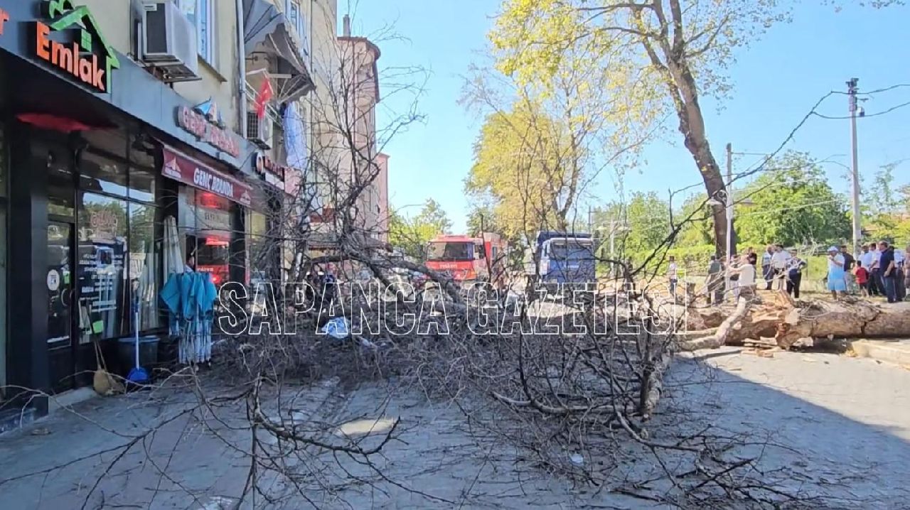 Sapanca İlçesinde, Cadde üzerinde bulunan asırlık çınar ağacı 4 katlı apartmanın üzerine devrildi.