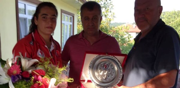 Yıldızlar Avrupa Şampiyonası'nda altın madalya kazanan Milli boksör Ece Asude Ediz, Sapancalı eski Boks Milli Takım Antrenörü Ali Şahin'i ziyaret etti.