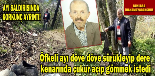 ''Yaşlılığı nedeniyle güçlükle yürüyen Yavuz amca elinde poşetlerle kestane gübresi toplarken ayı karşısına çıkmış. Ayı öfkeyle yavuz amcaya saldırmış, vurup yere yatırdıktan sonra sürüklemiş. Olay yerindeki ayakkabıları da gösteriyor. Yerde yaklaşık 20 metre kadar sürükledikten sonra kaldırıp 50 metre kadar ileride bulunan dereye getirip buraya bırakmış. Bu esnada üzerindeki pantolon ve elbiseler bile çıkmış. Yavuz amcayı dere içerisine bıraktıktan sonra bir ağaç altında gömmek için çukur açmak isterken aramaya çıkanların tabanca ile ateş etmesi üzerine kaçmış. Biz Yavuz amcayı bulduğumuzda çıplak vaziyetteydi"