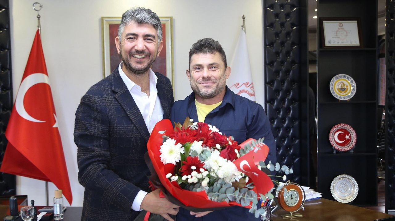 Hırvatistan'ın Porec şehrinde 8-13 Ekim 2024 tarihleri arasında düzenlenen 2024 Veteranlar Dünya Güreş Şampiyonası'nda önemli bir başarıya imza atarak dünya üçüncüsü olan geçtiğimiz yılın şampiyonu Sapancalı Milli Sporcu Hüseyin Memioğlu, Sapanca Belediye Başkanı Nihat Arda Şahin'i ziyaret etti.