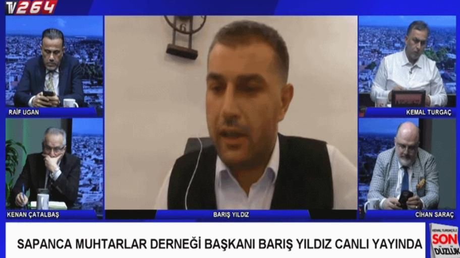 TV 264 ekranlarında yayınlanan "Son Düzlük" isimli programa katılan Sapanca Muhtarlar Derneği Başkanı Barış Yıldız, yorumcular Kemal Turgaç, Kenan Çatalbaş, Cihan Saraç ve Raif Ugan'ın sorularını yanıtladı. Yıldız bungalovla ilgili sorulan sorulara net yanıtlar verdi.
