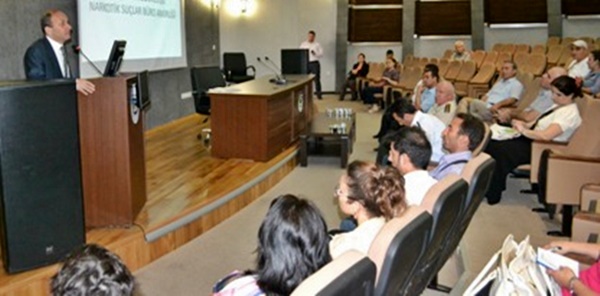 İl Emniyet Müdürlüğü'nde görevli TUMİM İl Temas Noktası Sorumlusu Harun Yıldırım tarafından yapılan sunumda, uyuşturucu madde kullanımı ve bir dizi önlemlere yönelik katılımcılara bilgiler verdi. Yıldırım, "Uyuşturucu madde kullanımın önlenmesine yönelik tedbirler önemlidir. Bu konuda talep azaltımına yönelik eğitim faaliyetleri yapılmaktadır. Bu anlamda 2013 yılı içersinde 3 ilçe, 2 kampüs, 1 sivil toplum kuruluşu ile 41 lise ve dengi okullarda eğitim faaliyetleri düzenlendi. Toplamda 92 faaliyetimize 8650 kişi katıldı. Uyuşturucu madde satışının önlenmesine yönelik tedbirlere yönelik de çalışmalarımız sürmekte" dedi.