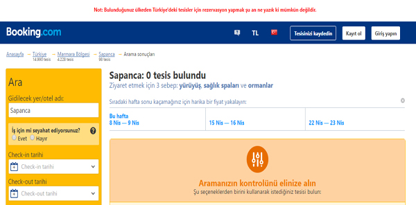 BOOKING'E ENGEL SAPANCA'YI DA ETKİLEDİ