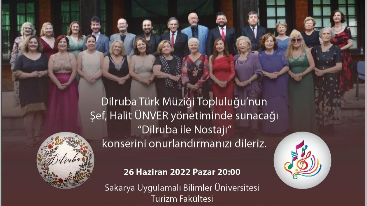 Sapanca'da 2 yıldır çalışmalarını sürdüren Dilruba Türk Müziği Topluluğu 26 Haziran Pazar günü sanatseverlere unutulmaz bir gece yaşatmaya hazırlanıyor.