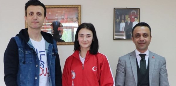 İlk kez milli takımla mücadele etmesine rağmen kürsüye çıkma başarısı gösteren Afra Adıyaman'a ziyareti sırasında Antrenörü Serkan Yılmazer eşlik etti.