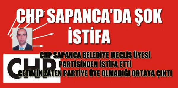 CHP Sapanca Belediye Meclis Üyesi Adnan Çetin partisinden istifa etti. Diğer yandan Çetin'in istifası sonrası zaten CHP'de kaydı olmadığı belirlendi.