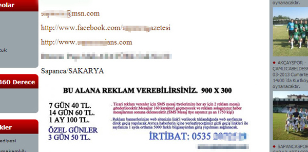 Aynı site yayınladığı reklam metninde ise reklam verenlerin sitelerine sahte ziyaretçi göndermeyi vaat etti. Yaklaşık bir yıldır özellikle Sapancalı vatandaşlardan haber göndermek vaadiyle toplanan ve ilgili site tarafından bin 750 adet oldukları belirtilen telefon numaralarına yakında reklam mesajları gelmeye başlayacak. Söz konusu site iletişim bölümünde yayınladığı reklam metninde bu telefon numaralarına sitelerine reklam veren firmaların reklamlarının gönderileceğini açıkladı. Aynı site yine reklam veren firmaların internet sitelerine sahte ziyaretçi gönderme vaadinde bulundu.