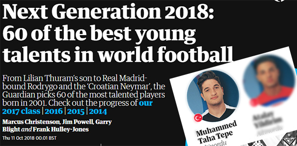 İngiliz The Guardian Gazetesi, 17 yaşında dünya üzerindeki en yetenekli 60 futbolcu arasında Altınordu'da forma giyen Sapancalı Muhammed Taha Tepe'ye yer verdi.
