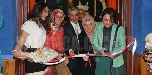 Protokol üyeleri açılışın ardından yıl boyunca yapılan ürünlerin sergilendiği sergi salonunu gezdi.