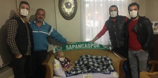 Bir grup Sapancaspor taraftarı, ilçenin sevilen isimlerinden Yusuf Özdemir'in ilik kanseri hastalığı ile mücadele eden oğlu Berat Özdemir'i ziyaret etti.