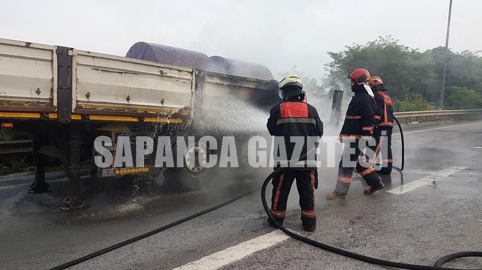 Tem Otoyolu Sapanca geçişinde seyir halindeki tırda çıkan yangın maddi hasara neden oldu.