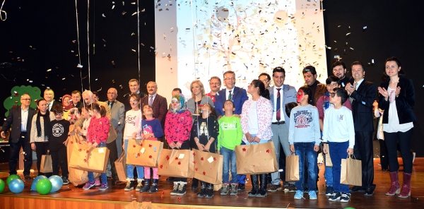 Dilek ağacına asılı notlar ve etrafında hediyelerin olduğu sahneye tek tek isimleri okunarak çağrılan öğrenciler protokol üyeleri eşliğinde dileklerine kavuşturuldu.
