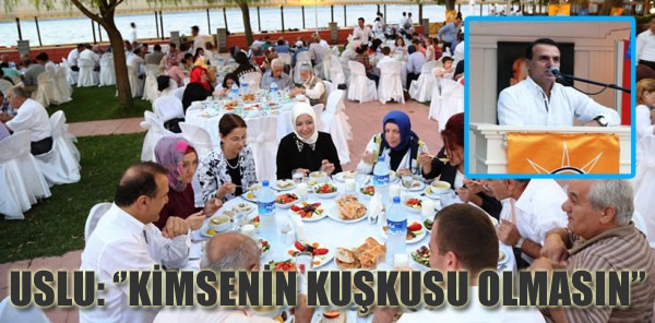 AK Parti Sapanca İlçe Teşkilatı iftar düzenledi. Yemek öncesi konuşan Başkan Uslu basın kuruluşlarına yüklendi. Uslu, "Kimsenin kuşkusu olmasın. Biz söz verdiğimiz gibi bütün projelerimizi bir bir hizmete açıyoruz" dedi.