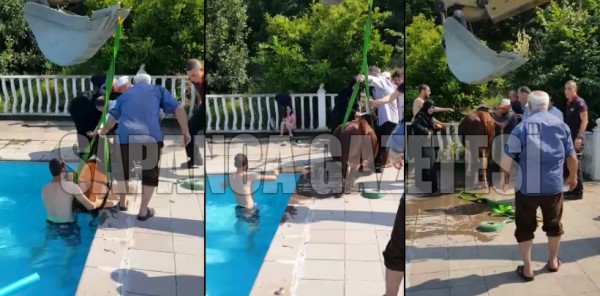 İNEK, YÜZME HAVUZUNA DÜŞTÜ