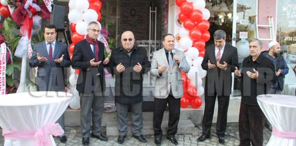 İlçe Müftüsü Orhan Örnek'in yaptığı duanın arından işyerinin açılış kurdelesi Belediye Başkanı Aydın Yılmazer ve eşi Nurten Yılmazer, Belediye Meclis Üyesi Ayşe Kösemen, AK Parti İlçe Kadın Kolları Başkanı Hatice Şahinoğlu ile Remziye Köksöken tarafından kesildi.
