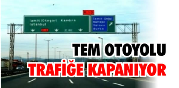 TEM yolunun İzmit Doğu Kavşağı ile Adapazarı Kavşağı arasında yol bakım onarım ve asfalt yenileme çalışmaları nedeniyle 2 Mayıs ile 15 Temmuz tarihleri arasında geceleri ulaşıma kapanacak.