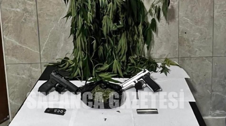 Sapanca İlçesinde Jandarma ekiplerinin düzenlediği baskında ruhsatsız silah ve uyuşturucu madde ele geçirildi.