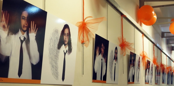 Öğrencilerin kendilerine yaptıkları özel makyajla şiddete maruz kalan kadınları canlandırdıkları fotoğraflardan oluşan sergi büyük ilgi gördü.