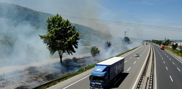 Karayolları ekiplerince aşırı sıcaklarda yol kenarlarında oluşabilecek yangınları önlemek amacıyla TEM otoyolunda ot temizleme çalışması başlatıldı.