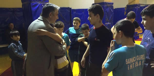 Sapanca Kaymakamı Gökhan Azcan, kickboks-wushu ve güreş okulu öğrencilerini ziyaret etti.