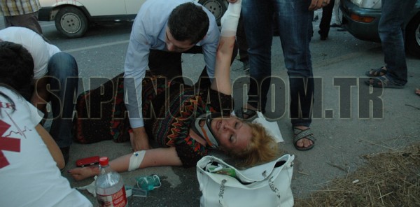 Sapanca'da sürücüsünün köpeğe çarpmamak için ani manevra yaptığı otomobil, düğüne gidenleri taşıyan başka bir otomobille çarpıştı. Kazada Şerafettin Ş., Sezgin Metin, Filiz Duman, Huriye Karakut ve Ayşe Kuvel yaralandı.