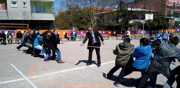 Günün anlam ve öneminin belirtildiği konuşma ve şiirlerin ardından çocuk oyunları bölümüne geçildi. Geleneksel çocuk oyunlarından Çuval, halat çekme, yoğurt yeme, yüz boyama, stapes, elma yeme yarışmaları yapıldı. Halat çekme yarışmasına Okul Aile Birliği Başkanı Necati Başar'ın, Okul Müdürü ve öğretmenlerin de katılması renkli görüntülere sahne oldu.