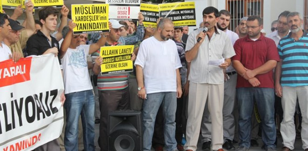 Oysa bizler diri olanlarız. Bizler kim olursa olsun zalimin karşısındayız ve kim olursa olsun mazlumun yanındayız. Bu vesile ile bir kez daha Mısır'da şehid edilen kardeşlerimize rahmet ve mağfiret diliyoruz. Onların kanları Mısır'ın kurtuluşuna yol açacaktır. Onların kanları zalimlerin son nefeslerini verdikleri damlalar olacaktır. Onların kanları Müslümanların yolunu aydınlatacaktır."dedi.
