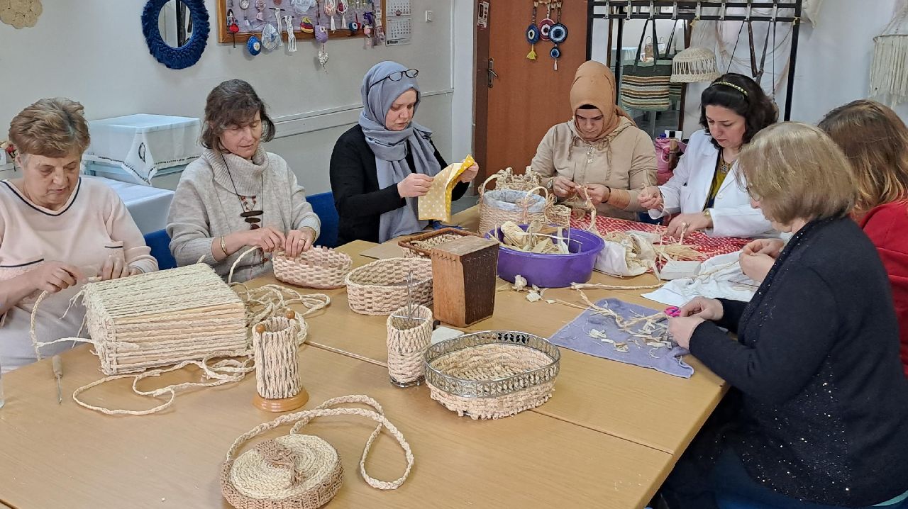 Kursiyer Samiye Yılmaz, hocaları sayesinde mısır kabuğundan ürün yapmayı öğrendiğini dile getirerek, "Gerçekten çok zevkli bir iş. Çanta, şapka, servis altlığı ve hediyelik eşya yapıyoruz." diye konuştu.