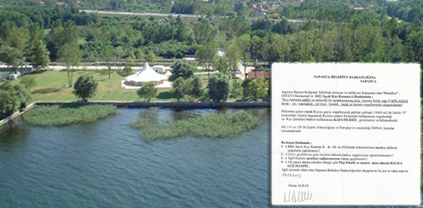 CHP’li Murat Albaş, Kamuya ait Göl Evi Restoran sahilinin 3621 Sayılı Kıyı Kanunu gereği duvar ve tellerin kaldırılarak ilgili alanın halkın kullanımına açılması talebiyle Sapanca Belediyesine müracaatta bulundu.