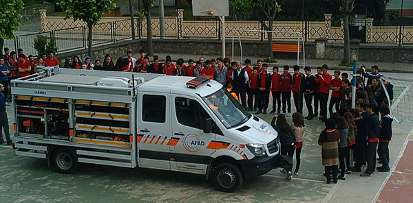 Okul konferans salonu ve bahçesinde gerçekleştirilen eğitimlerde özellikle deprem konusunda bilgilendirmelerde bulunularak, deprem anı ve deprem sonrası yapılması gerekenler hakkında bilgiler verildi.