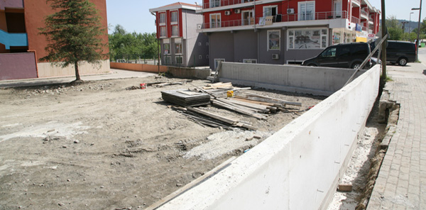 Okul bahçesine ilave edilen araziyi en iyi biçimde değerlendiren Fen İşleri Müdürlüğü ekipleri, Sapanca İlköğretim Okulu bahçesini şık bir perde duvarla ördü.