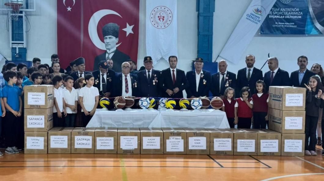 Sapanca Spor Salonu'nda gerçekleşen dağıtım töreninde okullara futbol, basketbol ve voleybol topları, voleybol filesi, huni, çember, tabak, yelek setlerinden oluşan antrenman malzemeleri ile ve slalom seti verildi.