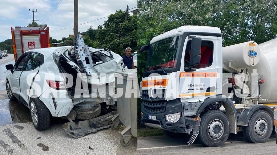 Kaza Sapanca Uzunkum Mahallesi Sakarya Caddesi üzerinde meydana geldi. Mehmet Ali B. (23) idaresindeki 54 PV 040 plakalı beton mikseri ile aynı yönde giden Samet T. (37) yönetimindeki 34 BAM 020 plakalı otomobil çarpıştı.