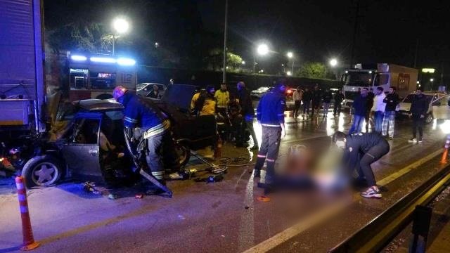 OTOMOBİL TIRA ÇARPTI: 2 ÖLÜ, 2 YARALI