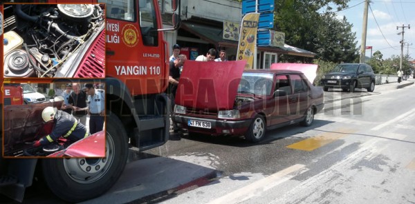 OTOMOBİLDE ÇIKAN YANGIN KORKUTTU