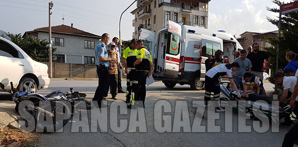 OTOMOBİLLE MOTOSİKLET ÇARPIŞTI: 2 YARALI: Sapanca ilçesinde meydana gelen trafik kazasında 2 kişi yaralandı.