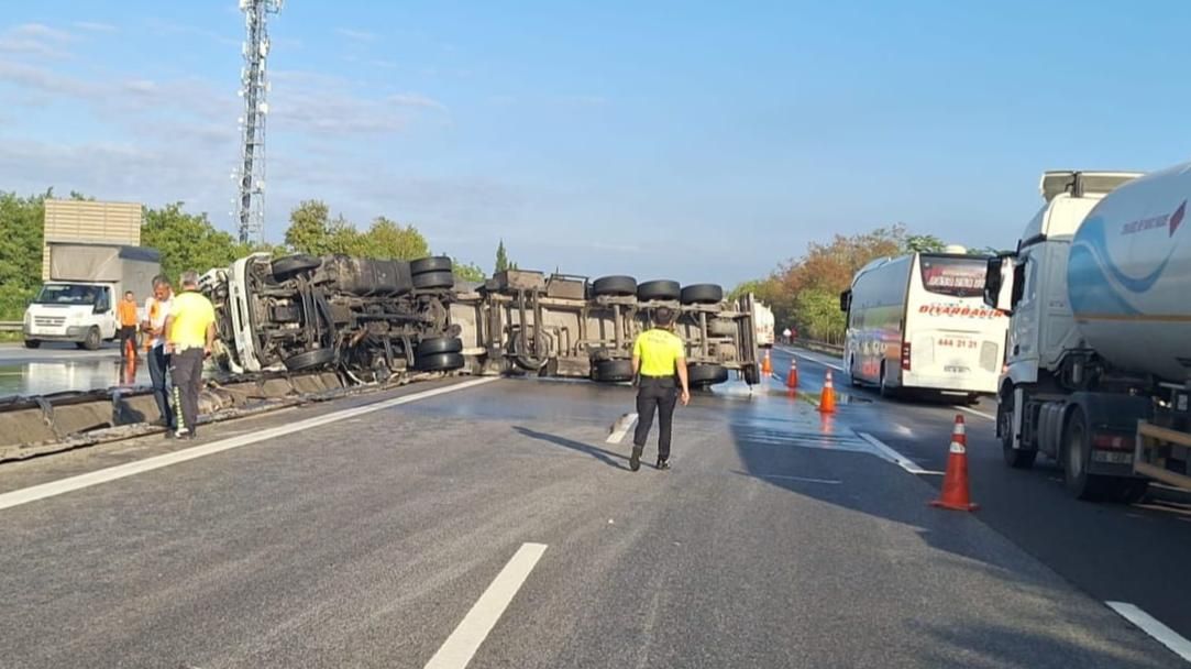 Kaza, sabah saatlerinde Anadolu Otoyolu'nda meydana geldi. İstanbul istikametine giden yabancı plakalı etilen glikol yüklü tanker, sürücüsünün direksiyon hakimiyetini kaybetmesi sonucu kontrolden çıkarak orta refüje devrildi.