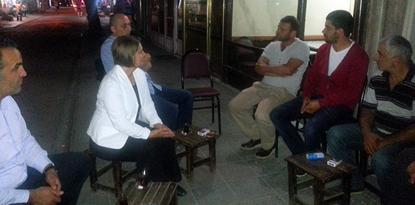 Çay molası için kahvehaneye uğrayan Oya Arapoğlu'nu vatadanşlar ilgiyle karşıladı. Sapanca'nın genel sorunları hakkında bilgi alışverişinde bulunan Arapoğlu, hemşehrilerinin sorularını da cevapladı.