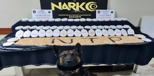 TEM Sakarya geçişinde durdurulan araçlarda 15 kilo 500 gram takoz esrar ve 22 bin 414 adet 'Captagon' diye tabir edilen uyuşturucu hap ele geçirdi.